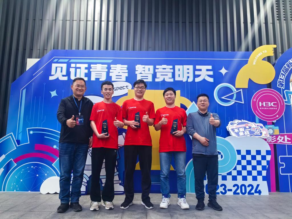 本站讯 近日,2023-2024年第13届新华三杯全国大学生数字技术大赛总决赛在新华三集团杭州总部落下帷幕,我校母军臣和付红杰两位老师指导的学生获得个人赛一等奖1项,三等奖2项,团队赛二等奖,其中个人赛一等奖是河南省目前的最佳成绩,获得了突破。
