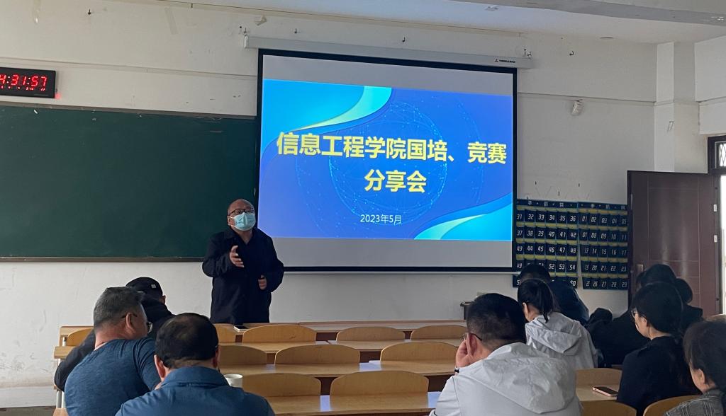 本站讯 5月4日,为了进一步开阔教师视野,感受先进理念,提升教育教学水平,积累技能大赛经验,信息工程学院在院401多媒体教室召开了国培培训和竞赛经验分享会。院长张新成、副院长李响、王晓婷及全体教师参加了会议。
