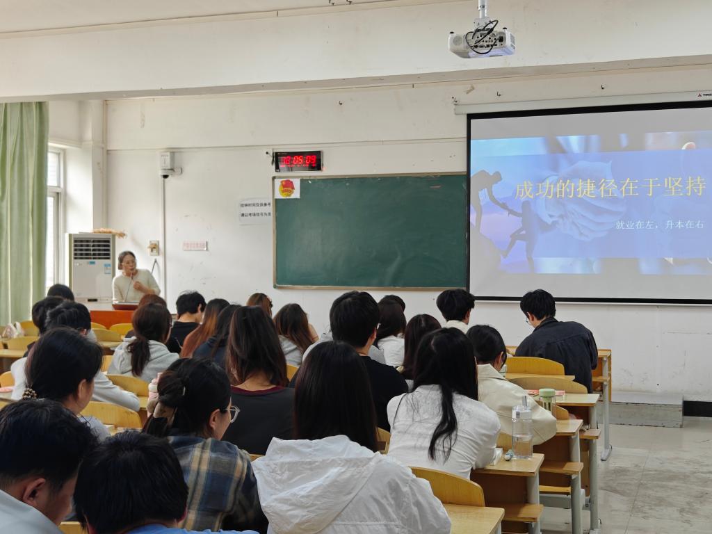 4月27日,赵展从政策解读入手,为学生系统梳理就业创业形势,以及专升本考试的报考条件、招生院校及专业设置,深入剖析各学科考试大纲与命题趋势。针对升学备考,她分享了科学的时间规划方法,指导学生制定个性化复习计划,还就志愿填报策略等关键环节展开细致讲解,结合真实案例答疑解惑,助力学生明晰方向、高效备考,为其升学深造之路点亮明灯。