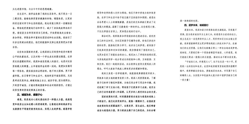 本站讯 为深入学习贯彻习近平新时代中国特色社会主义思想,弘扬诚信文化、倡导诚信行为、培养诚信品格,信息工程学院(软件职业技术学院)响应学校号召,结合工作实际开展2025年“诚信校园行”学生资助宣传教育“守诚信之本,怀感恩之心”主题征文活动。
