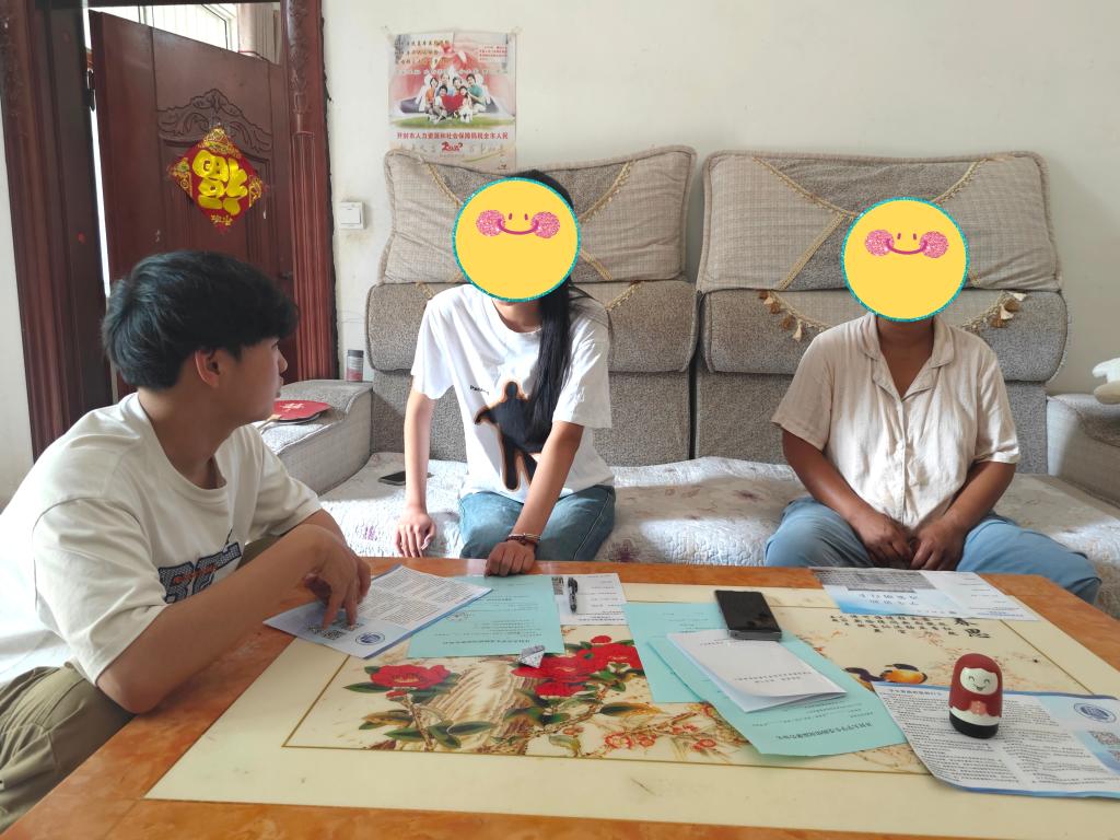 本站讯 为持续贯彻落实国家资助育人政策,进一步做好家庭经济困难学生资助政策宣传工作,增强家校协同育人合力,7月5日,信息工程学院党总支副书记李红礼、辅导员代表高俊笑、2024年暑期资助宣传大使张家辉赴祥符区西姜寨乡段木周村困难学生家中开展暑期精准家访活动。