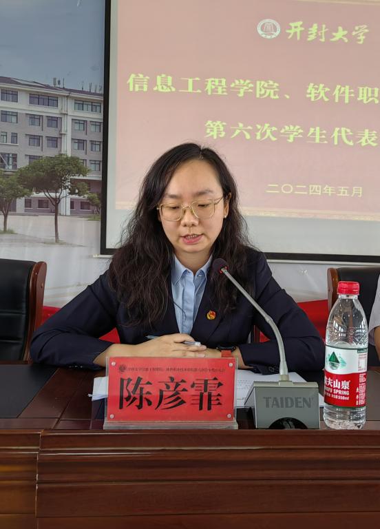 在雄壮的国歌声中,大会正式开幕。陈彦霏代表校团委对大会召开表示热烈祝贺,希望大会即将选举产生的新一届学生委员能够带动好学院学生会组织牢记习近平总书记对广大青年给予的希望,与时俱进,加强自身建设,充分发挥桥梁和纽带作用,为推进学校“双高”建设做出新的更大的贡献。李红礼代表学院党总支致题为《坚守群团组织的底色 发扬抓铁有痕的韧劲塑造学生会组织的新面貌、新形象》的开幕词,提出了三点期望,希望学院学生会在今后的工作中,以习近平新时代中国特色社会主义思想为指引,把牢政治方向,引导学院青年学子坚定不移跟党走;聚焦主责主业,坚持从严治会,巩固改革成果;做实“我为同学做实事”品牌,助力学院青年学子全面发展。黄河水院信息工程学院学生会主席赵书帆代表兄弟院校学生会宣读了贺信;学院学生会执行主席祁映嘉代表第五届学生会委员会作题为《党建引领谱新篇  扬帆奋进正当时》的学生会工作报告,总结了自学院上次学代会以来,学院学生会组织坚持“党建工作引领高水平建设  团建工作带动高质量发展”工作格局所取得的成绩和存在的不足,号召同学们坚定不移听党话、跟党走,实学实干,脚踏实地、埋头苦干。在攀登知识高峰中追求卓越,在肩负时代重任时行胜于言,在真刀真枪的实干中成就一番事业。