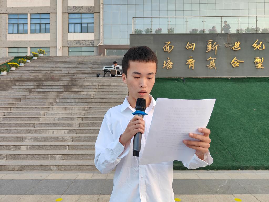 在雄壮的国歌声中,伴着东升的旭日,五星红旗冉冉升起。学生代表,2023年度国家奖学金获得者;2023年度河南省、开封市职业技能竞赛获奖代表,河南省及开封市技术能手称号获得者,2021级计算机网络技术专业1班刘浩同学,分享了自己在学院年度学雷锋活动中,如何以雷锋同志为榜样,传承雷锋同志的钉子精神,在专业学习和技能竞赛中取得优异成绩的经历和感悟,号召同学们积极参与到年度学雷锋活动中,做一颗新时代的永不生锈的螺丝钉。