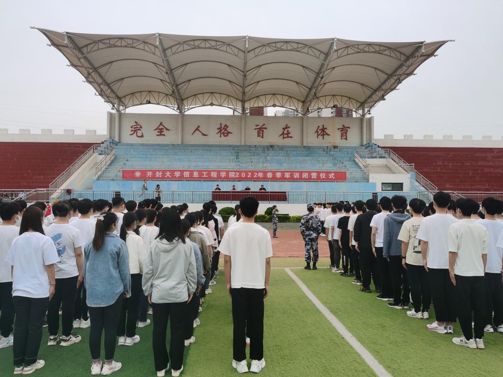 本站讯 5月14日,信息工程学院2022年春季军训闭营仪式在学校田径场举行。信息工程学院党总支书记袁震、院长张新成、党总支副书记高剑南出席了闭营式。参加此次2022年春季军训的340余名同学参加了闭营式。闭营式由学院团总支书记贺钰主持。
