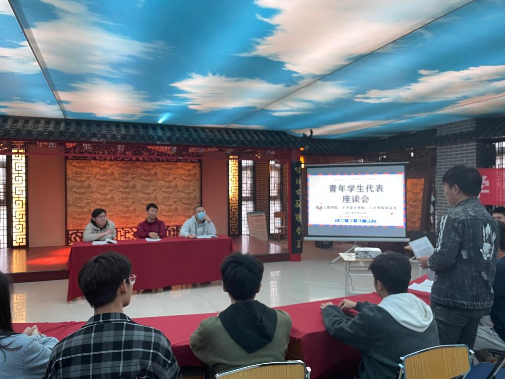 本站讯 为纪念五四运动102周年,引领广大青年学生传承和发扬五四精神,在五四青年节即将到来之际,信息工程学院、人文学院、艺术设计学院团总支在14号楼“文化家”联合召开青年学生座谈会,学习贯彻学校纪念五四运动102周年暨五四表彰大会会议精神。信息工程学院团总支负责人贺钰老师、人文学院团总支负责人胡超老师、艺术设计学院团总支书记孙巳尧老师与三个学院此次受到表彰的先进集体和青年团员代表60余人参加了此次座谈会。座谈会由贺钰老师主持。