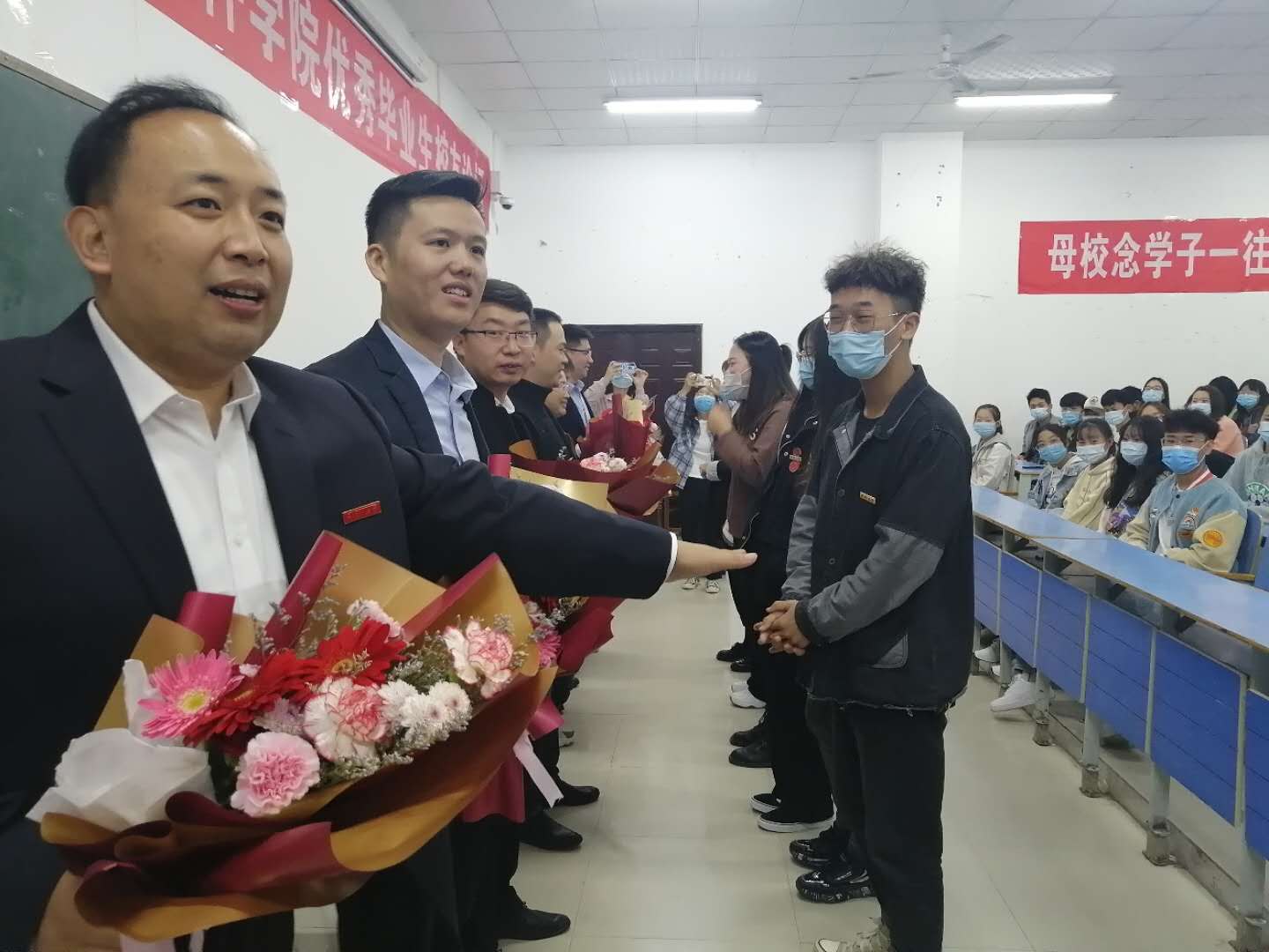 校友们首先就自己的学习经历、工作经验进行了分享,并从专业学习、就业方向及专升本学历深造等方面做了深入的交流和指导。台同学积极提问,台上的校友们热心答疑,自由问答环节论坛的气氛推向高潮。最后,校友们将手中的鲜花赠与学弟学妹们,达到了“分享心得助力成长薪火相传”的目标。