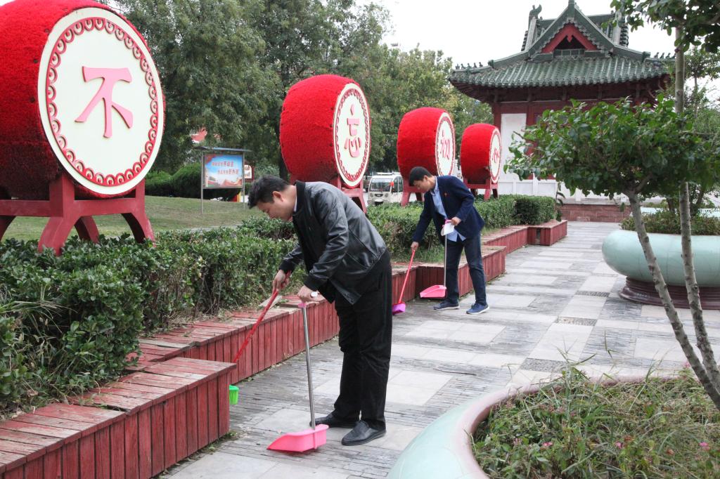 学习参观结束后,全体党员来到宣誓厅,聆听了《国际歌》,共唱《国歌》,在教工党支部书记王娟同志的领誓下重温了入党誓词,再次向党旗庄严宣誓,并在《共产党员承诺书》上签字。会后全体党员对展馆周边的卫生进行了一次大扫除并缴纳了党费。