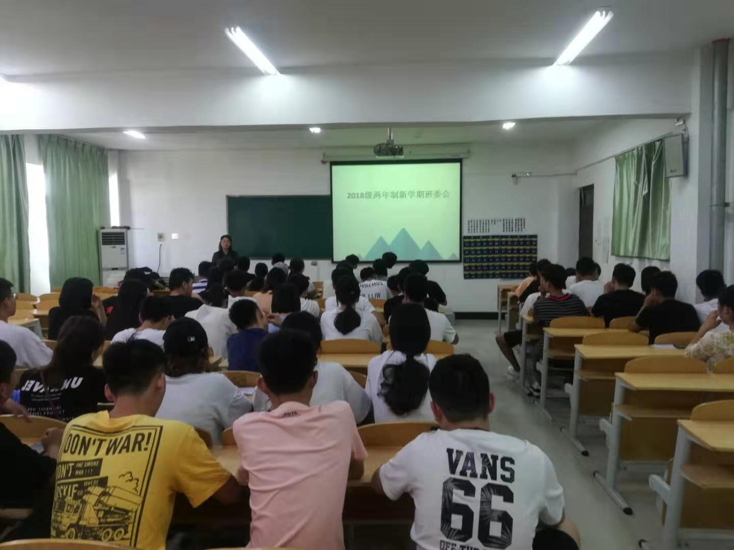 王老师首先让班委们对上学期工作做了总结,指出了工作中的不足之处,同时讨论了新学期班级的工作规划,然后由王老师给大家讲解新学期的工作安排和要求,并给予了班委们鼓励。通过“马斯洛需求层次理论”例子告诉班委们在做好班级工作的同时实现自己的人生价值。同时王老师也对班委们表示了她对18级两年制的寄托和期待。
