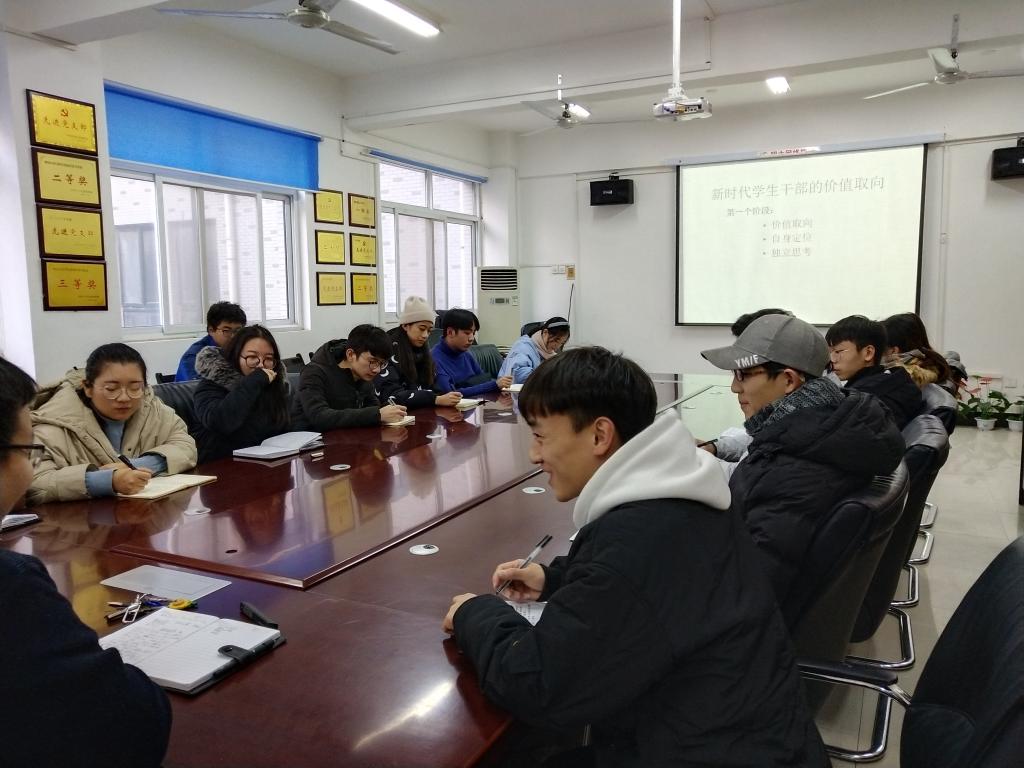 本站讯 12月13日,信息工程开展了学生干部培训会,会议由学院党总支副书记韦志鹏主讲,他培训的主题为“新时代学生干部的价值取向”的培训会。