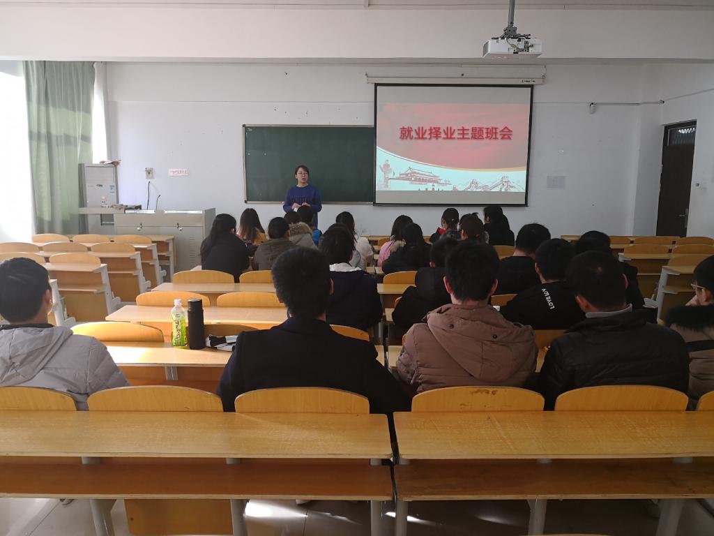 本站讯 为提高我院学生就业的主动性和积极性,11月14日中午,我院在3号楼403,405教室举办了就业择业主题班会。班会由各班班长主持,毕业班辅导员及2019届毕业生参加了本次班会。