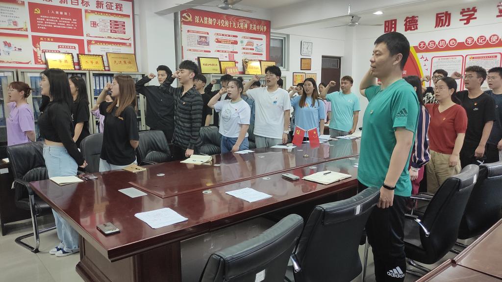 活动中,与会党员师生在庄严的党旗下重温了入党誓词。集中学习了习近平总书记关于《把握新发展阶段,贯彻新发展理念,构建新发展格局》的讲话精神。为本月迎来政治生日的党员同学过了集体政治生日。校党委组织统战部副部长武莹老师结合“学党史 知党情 跟党走”的主题为参加活动的师生党员做了党史教育。她指出,在建党百年华诞之际习近平总书记号召全党上下积极开展党史学习教育,目的在于让全国9千多万党员重温我党百年的艰辛历史,牢记创建党组织时的初心使命。武老师还通过讲授建党初期牺牲的瞿秋白、陈延年、陈乔年等青年党员的事例,号召学院青年党员要传承好革命先烈的革命遗志,树立远大理想;通过党史学习思考自己如何在学习和生活中发挥党员作用,努力成为像袁隆平、吴孟超院士一样的国之栋梁。