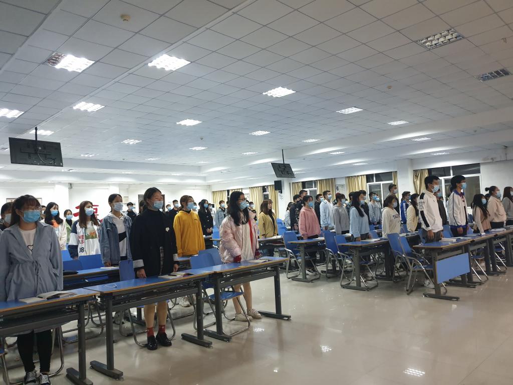 开班仪式上,参会领导和全体学员高唱国歌。校党委委员、组织统战部部长赵海胜嘱托全体学员在抗疫精神的感召下,努力在繁重的课程和实践中,掌握党的基本知识,同时将所学知识融入自己的行动指南,肩负起中华民族伟大复兴而奋斗的时代使命。学院党总支书记袁震叮嘱全体学员在学习之前要确定好自己的入党动机,确定好自己的发展目标,积极培养自己的创新和学习能力,在党课学习中切实加强党性锻炼。学院党总支副书记高剑南宣读了此次党课培训班的课程安排和组织要求。学生党支部书记贺钰要求同学们在此次培训学习中发扬好抗疫精神,保持良好的精神风貌,以敬畏、严肃、积极、认真的态度上好每一节课、作好每一次笔记、参与好每一次讨论、完成好每一次实践活动、撰写好每一篇心得体会,争取圆满完成此次党课培训。