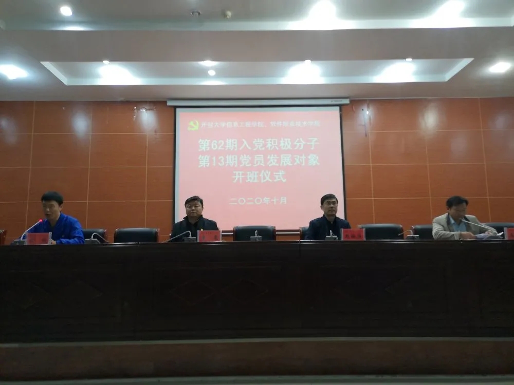 本站讯 10月13日晚,bat365在线官方网站信息工程学院、软件职业技术学院在土木建筑工程学院报告厅举行第62期入党积极分子、第13期党员发展对象培训班开班仪式。校党委委员、组织统战部部长赵海胜、信息工程学院党总支书记袁震、信息工程学院党总支副书记高剑南出席本次开班仪式。两期党课培训班全体学员参加了开班仪式。仪式由信息工程学院学生党支部书记贺钰主持。