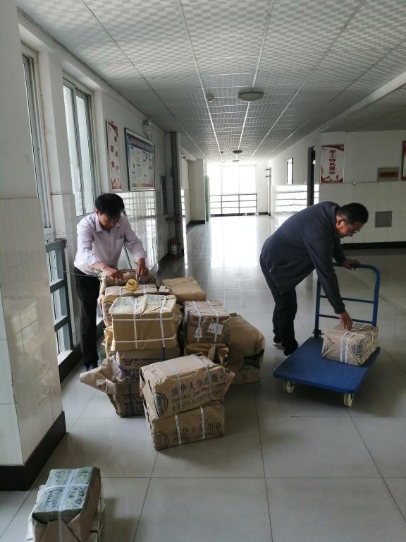 在教材规整后,学院全体辅导员按照邮寄要求,按年级、班级对教材进行了分类清点。邮寄工作开始后,辅导员们主动帮助邮政工作人员对书籍进行分整和打包。据邮政工作人员介绍,我院的教材在已经寄出的11个院部中,无论从教材种类和教材数量均多余别的院部。在辅导员老师的帮助下,仅用不到一天半的时间就完成了2018和2019两个年级19个班级的书籍打包和整理。目前学院省内学生已经基本收到教材。