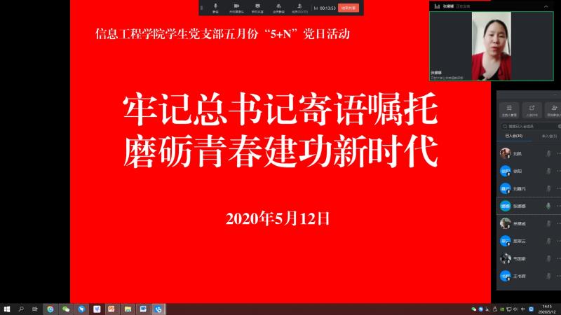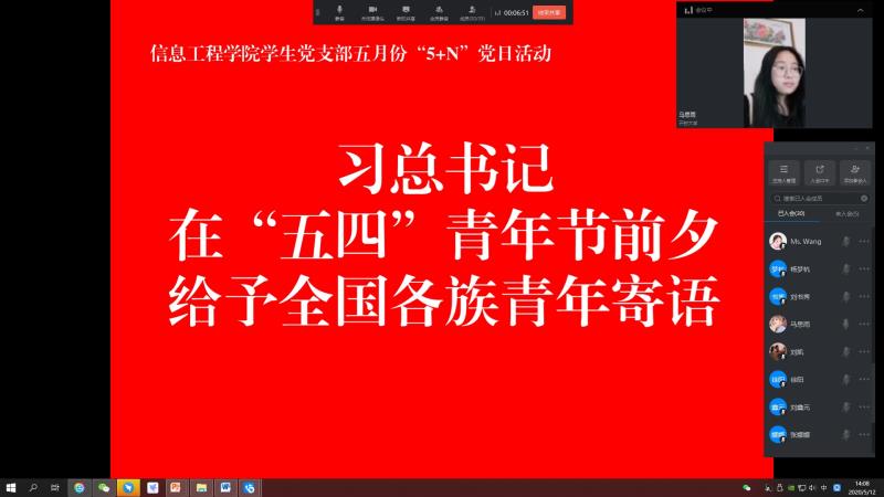 本站讯 在全国各族青年积极学习习近平总书记在“五一劳动节前夕给郑州圆方集团全体员工的回信”和“在五四青年节前夕给予全国各族青年寄语”之际,时值“5·12”汶川大地震十二周年和全国防灾减灾宣传周。结合信息工程学院“把灾难当教材 读懂伟大祖国 与祖国共成长”系列活动,信息工程学院学生党支部开展了“牢记习近平总书记寄语嘱托 磨砺青春建功新时代”5+N党日活动。