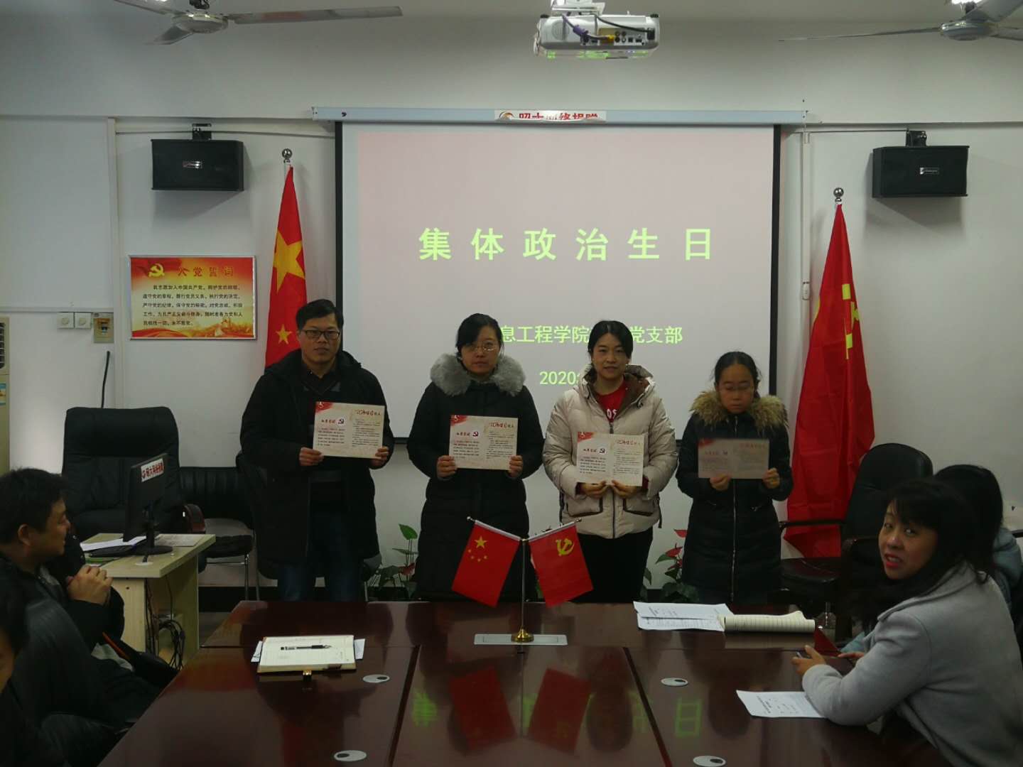 本站讯 111日下午,信息工程学院教工党支部在院部三楼会议室开展“不忘初心,砥砺奋进,共圆伟大复兴中国梦”一月份“5+N”主题党日活动。会议由教工党支部王娟书记主持。