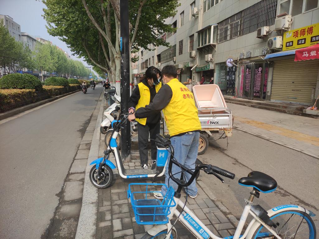 在学习阅览后,青年党员、“小青訫”青年志愿者、党课学员们和顺河区团委、苹果园社区团工委的同志们一起,到苹果园社区的各个街道开展了文明创建活动。活动中,大家清扫了社区内老旧小区改造所遗留下来的垃圾、清洁了部分小背街道,并将社区街道边的各类非机动车摆放整齐。大家用自己的行动为春日里的苹果园社区描绘了一道靓丽的青春风采。收到了社区居民的广泛赞誉。