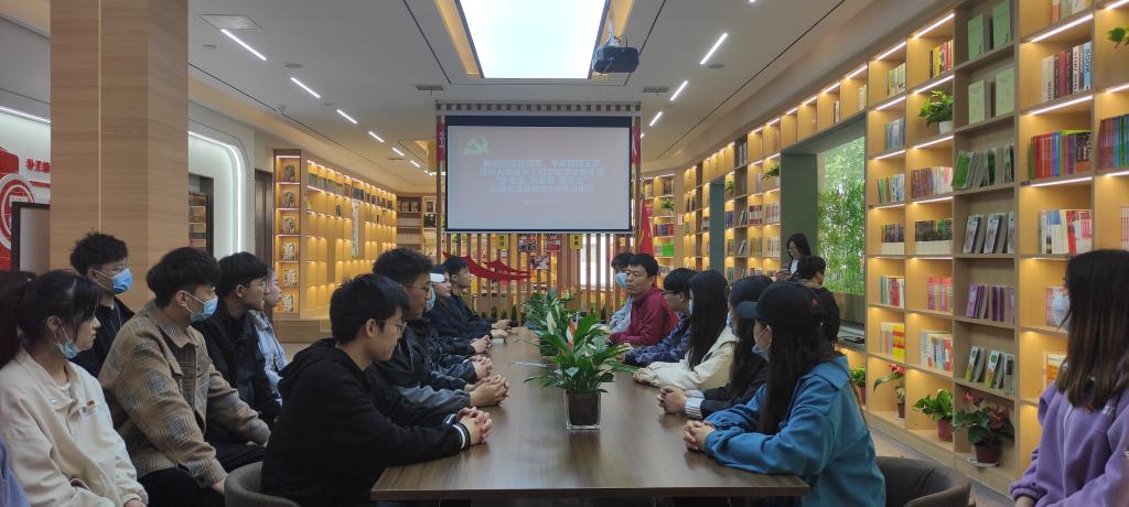 在顺河回族区刚刚建成的党建教育基地“初心家园”党建服务中心。学生党支部的青年党员们在庄严的党旗前重温了入党誓词,观看了党史教育纪录片《大党赤子之心》,学习了《中国共产党党史》(节选章节),各位青年党员也对近期自身表现进行了自评。活动当天恰逢“世界读书日”大家还在工作人员的带领下参观了“初心家园”中的“初心书屋”并认真阅览学习了书屋中的党史和党建书籍,进一步充实自己的党史理论知识。