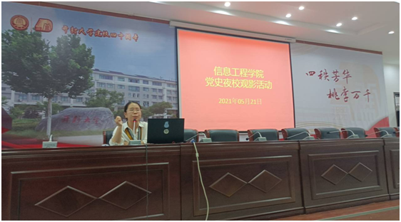 本站讯 5月19日和5月21日晚上七点,信息工程学院在土木工程学院六楼报告厅举办了党史夜校观影活动,活动由张娜娜老师主持,20级全体学生在土木工程学院六楼报告厅观看了《国歌》和《我的长征》两部影片。