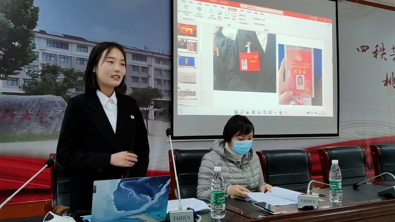 在李卓珊老师授课前,我校共青团河南省第十五次代表大会代表、校学生会执行主席李梦同学向学院青马班全体同学宣讲了河南省团的十五大会议精神,并结合自身参会经历同大家交流了参会感受,她号召大家要坚定不移的高举团旗跟党走,认真学习贯彻我省团的十五大精神,在自己不同的岗位上积极奉献青春力量。