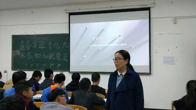 本站讯 10月18日晚,信息工程学院2017级新生在3号楼401教室召开学习宋校长在2017级新生开学典礼上的讲话精神主题班会,班会由新生辅导员张娜娜老师主持。