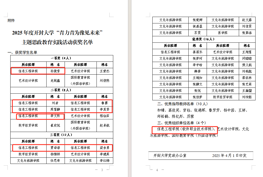 信息工程学院(软件职业技术学院)在2025年度bat365在线官方网站“青力青为豫见未来”主题思政教育实践活动中喜获佳绩