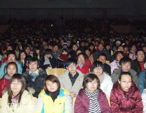 2010年12月30日晚7点,我校“扬帆起航,共迎未来”2011年元旦文艺汇演在金松大礼堂隆重举行。副校长万是明,学生工作部部长陈岩,团委书记樊玉霞,副书记陈嘉慧、艺术教研室负责人、各院党总支副书记、团总支书记及千余名师生欢聚一堂共同观看了本场晚会。