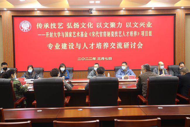 本站讯 3月7日下午,河南大学国家艺术基金《宋代官窑制瓷技艺人才培养》项目组负责人、中国雕塑学会会员、中国陶瓷工业协会会员、河南省雕塑学会副会长、河南大学美术学院副教授李政,北京至善智行教育科技有限公司总经理吕玉湖一行17人到校参观指导。校长宋晓炜、副校长赵辉及艺术设计学院、旅游学院、人文学院主要负责人和部分骨干教师参加了交流研讨。