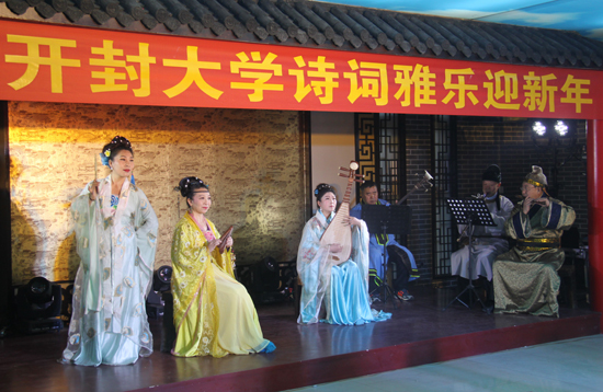 本次活动表演了宋词吟唱、诗词朗诵等节目,大家在欢庆新年的愉快氛围中,欣赏到艺术家们古典优雅的吟唱。辛弃疾的《清玉案》、李清照的《一剪梅》、李煜的《玉楼春》等一首首耳熟能详的宋词佳作,在艺术家们温婉悠扬的唱腔中表达的淋漓尽致,使人一朝梦回市井繁华的大宋王朝。人文学院2016级传播与策划专业学生与宋词乐舞大师们合作表演了习近平主席填写的《念奴娇·追思焦裕禄》,时而慷慨激昂、时而深情款款,让在场观众深切缅怀党的好干部焦裕禄同志的同时,再次接受精神上的洗礼。