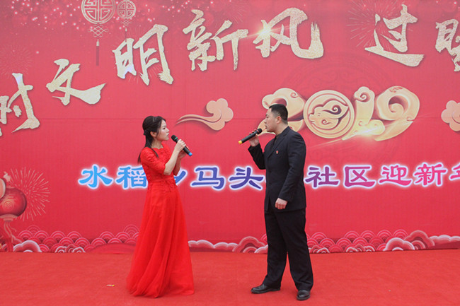 1月30日上午,在马头集社区的广场上,我校党员志愿者们与社区艺术团的群众们一起举行了“树文明新风,过暖暖新年”暨水稻乡马头集社区迎新年联欢会。我校党员志愿者们为群众们奉献了《美丽的神话》、《C哩C哩》、《等待》等。精彩的歌舞,获得了群众们的广泛好评。