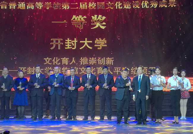 本站讯 12月4日至5日,由中共河南省委高校工委、河南省教育厅主办,河南大学、教育时报承办的河南省普通高等学校第二届校园文化建设优秀成果展演暨大美学工颁奖仪式在河南大学举行。河南省教育厅副巡视员李金川出席展演活动并为获奖单位颁奖。我校党委书记陈灿、工会主席成芳出席了颁奖仪式,党委办公室负责人、大观博物馆负责人和我校学生工作队伍代表参加了颁奖仪式。