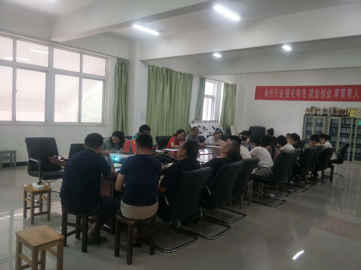 7月14日上午,艺术设计学院学院全体成员在学院会议室召开“双高”建设务虚工作会,通过集体学习和研讨“双高”建设、学校今年十项重点工作等重要问题,扎实推进学院的改革和发展。会议由党总支书记王江然主持,全体教师参加,采用了集中学习、分组讨论、个别发言、会议总结等形式。