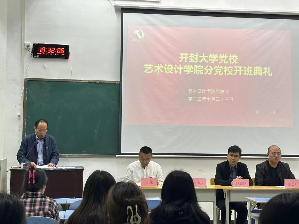 本站讯 为深入学习贯彻党的二十大精神及习近平新时代中国特色社会主义思想主题教育。10月23日晚,艺术设计学院在15号楼520教室举行第68期入党积极分子暨第19期党员发展对象培训班开班典礼。bat365在线官方网站党委委员、组织统战部部长赵海胜、艺术设计学院党总支书记赵志成、副书记王龙、辅导员李恩广,57名学员参加开班典礼,学生党支部组织委员任海东主持开班典礼。