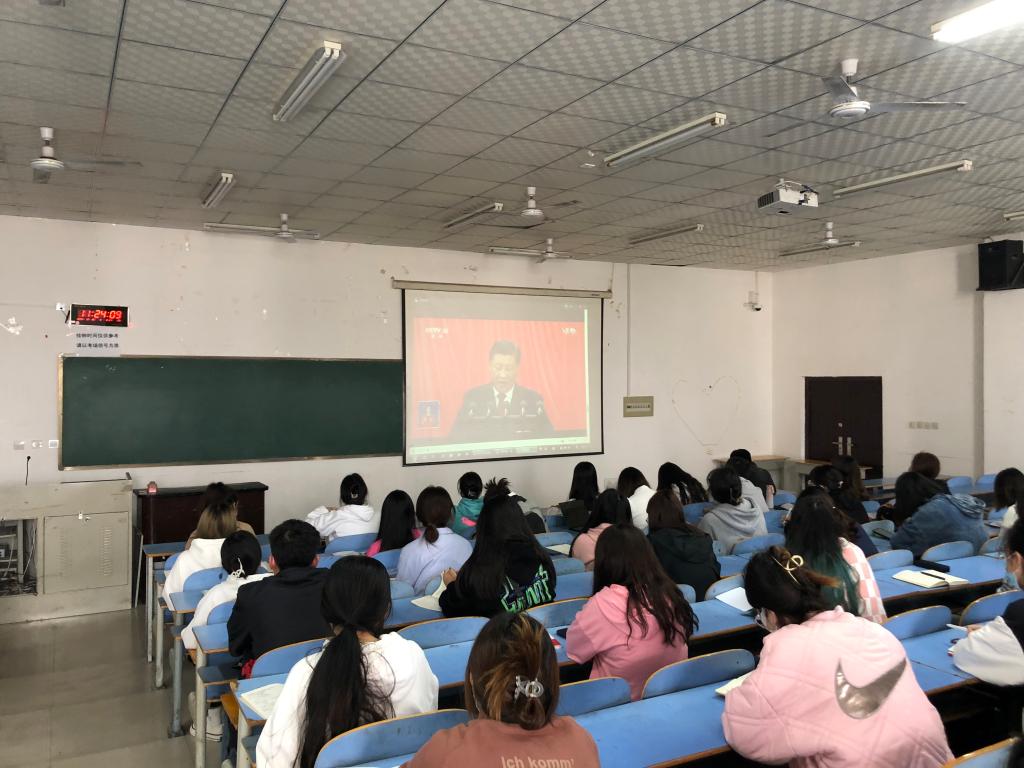在严格落实疫情防控要求的前提下,64名入党积极分子、16名党员发展对象、10名学生党员在15号楼519教室收看了党的二十大开幕会。与会人员精神饱满、端坐静听,全神贯注作笔记,在听到一个个振奋人心的消息和举世瞩目的成就时,时而激动,时而自豪,时而热泪盈眶,不时爆发出阵阵掌声,表现出了青年学子对党的无限热爱。