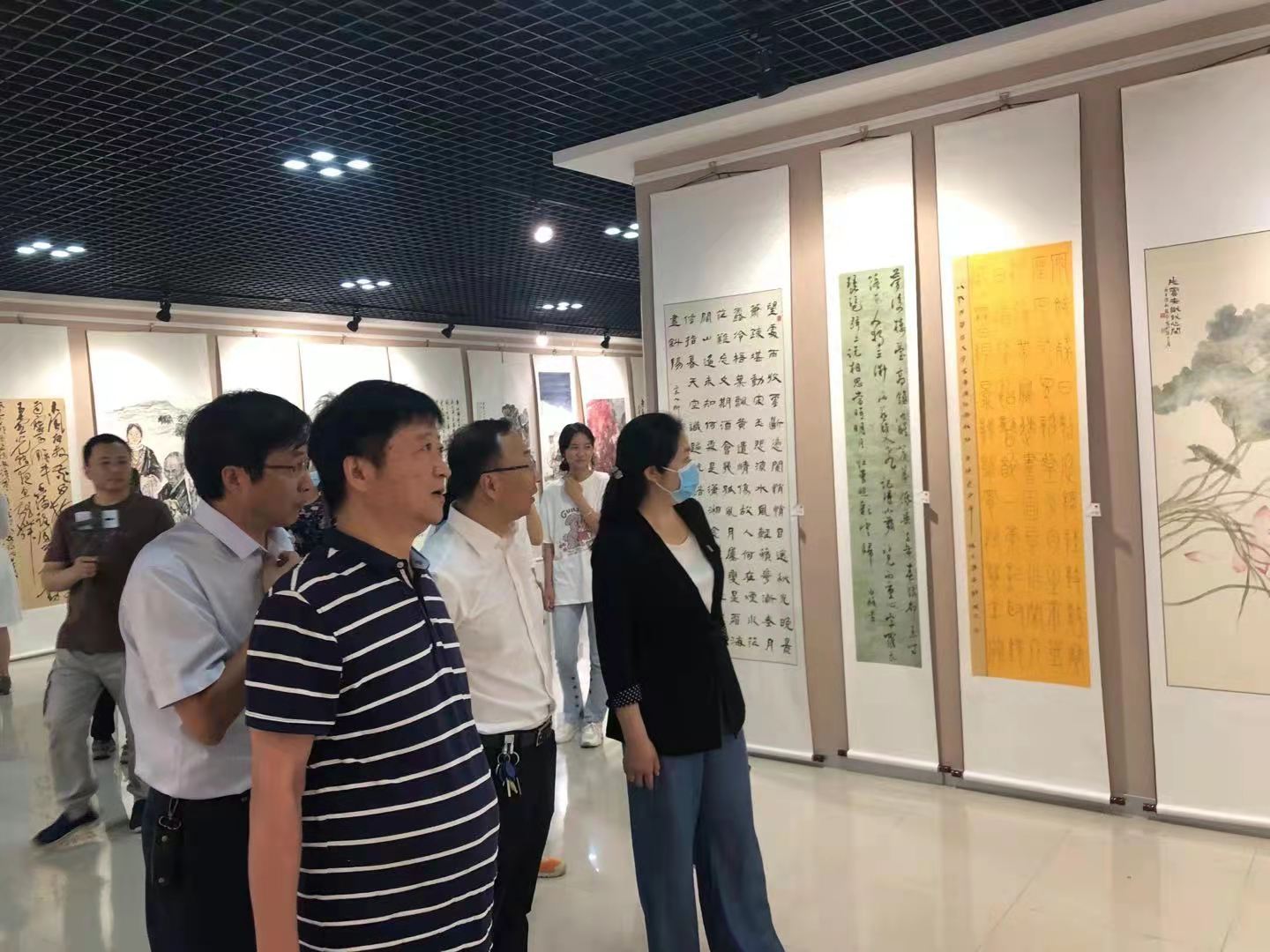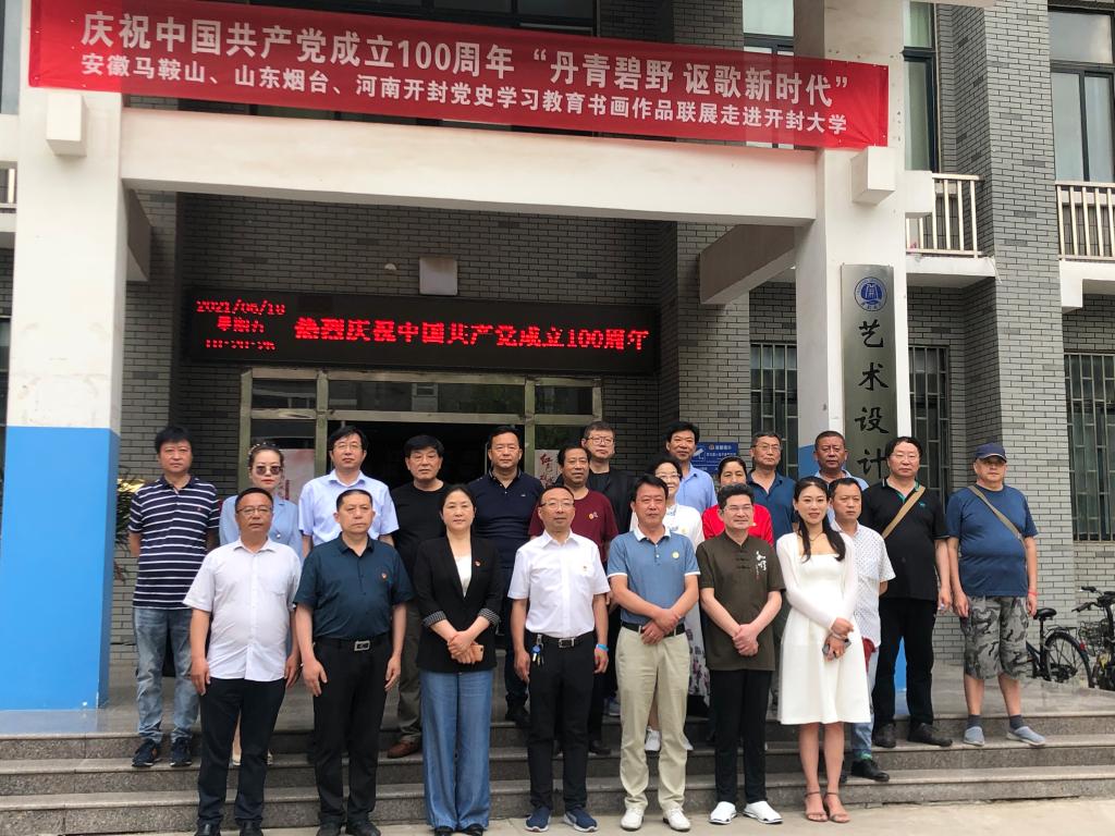为喜迎中国共产党百年华诞,讴歌中国特色社会主义新时代,由中共开封市鼓楼区委宣传部、bat365在线官方网站党委宣传部主办,开封市鼓楼区文学艺术界联合会、开封市鼓楼区文化和旅游局、马鞍山李白书画研究院、烟台职业学院书画艺术研究院、bat365在线官方网站艺术设计学院共同承办的“丹青碧野 讴歌新时代”河南开封、安徽马鞍山、山东烟台三地书画联展走进bat365在线官方网站活动,于6月18日上午在艺术设计学院隆重开幕。