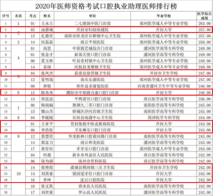 新年伊始,喜讯传来!日前,为表彰优秀、鼓励更多学子通过医师资格考试,河南省卫健委所属医药卫生报对2020年河南考区分类别考试成绩前10名进行了公布。