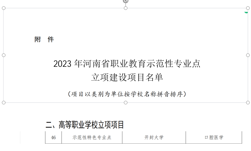 近日,河南省教育厅发布了《关于公布 2023 年河南省职业教育示范性专业点立项建设项目名单的通知》,我校医学部口腔医学专业入选2023年度河南省职业教育示范性特色专业点。省级职业教育示范性特色专业点建设工作是我省现代职业教育体系建设改革新举措,旨在推动职业教育结构与产业结构优化匹配,提升职业院校服务经济社会发展能力。