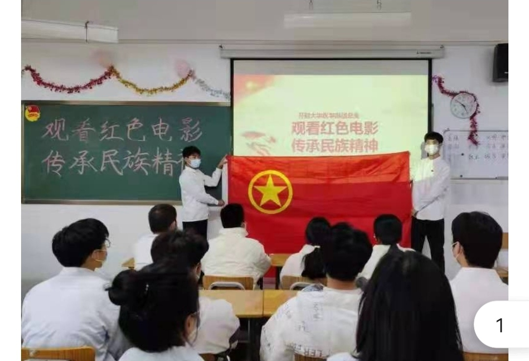 三、在2021年11月18日下午,医学部团总支宣传部多名干事,在16号楼302教室观看了有教育意义的影视作品,学习传承红色精神。