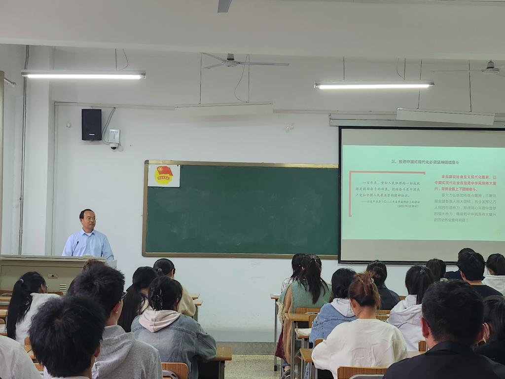 党课上,谢文忠将自身工作实践、学生成长成才融入到党课讲授中,用一系列生动鲜活、感人至深的故事案例为师生深度解读了以现代化建设全面推进中华民族伟大复兴的丰富内涵,引发大家的深度思考与情感共鸣。谢文忠对青年学生提出了殷切期望:一是要胸怀远大理想,增强使命担当,将个人理想追求深深融入到党和国家的事业发展中;二是要从国家现代化建设征程中中汲取团结奋进的磅礴力量,将其转化为推动个人成长成才的实际行动。