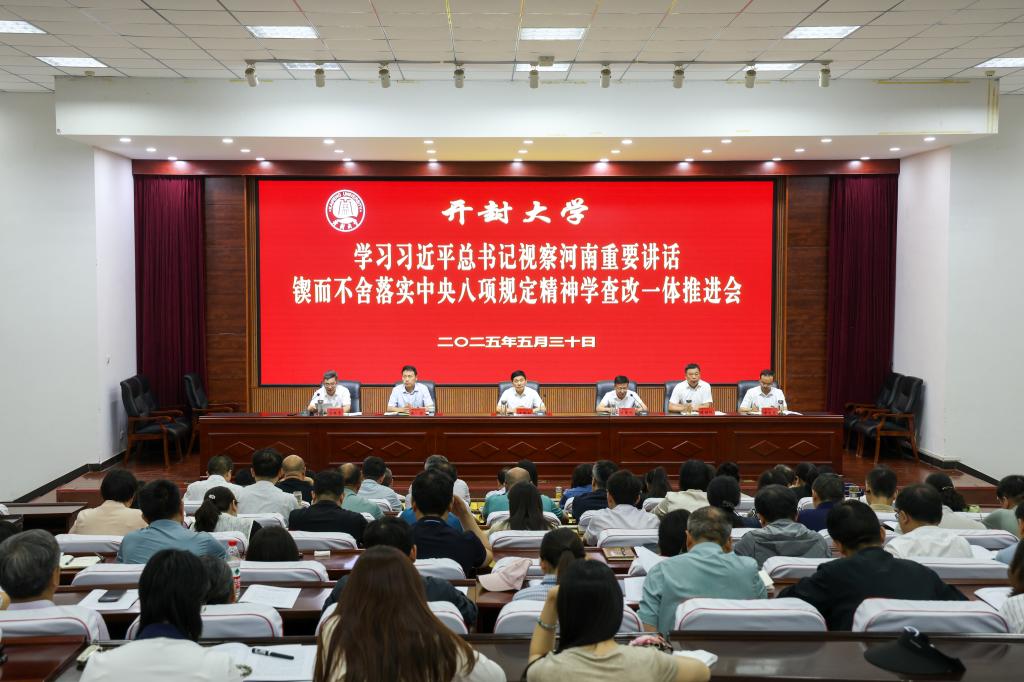 本站讯  5月30日,bat365在线官方网站召开认真学习习近平总书记视察河南重要讲话、锲而不舍落实中央八项规定精神、学查改一体推进会。校党委副书记、校长王德如出席会议并讲话。