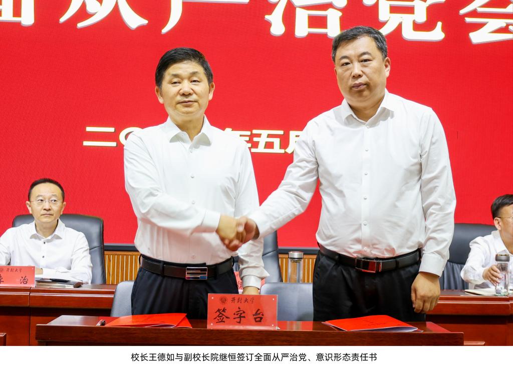 校纪委书记石超亭安排部署了2025年纪检监察工作校党委副书记张合要求,要提高站位,强化责任,优化作风,狠抓落实。会上,王德如与校领导班子成员现场签订了全面从严治党、意识形态责任书,各院、部负责人向校长递交了年度目标任务责任书。